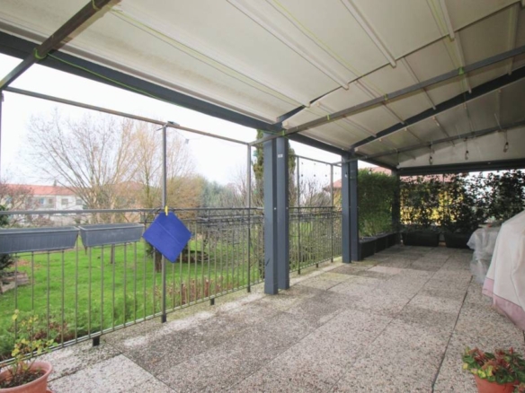 Bertesinella. In una via immersa nel verde e a un passo dal centro cittadino offriamo in vendita un appartamento al piano primo in contesto di sole 3 unità, in una palazzina in cui è stata rifatta la facciata nel 2009 e che quindi si presenta in ottime condizioni. — Accediamo da una scala in comune con un solo altro appartamento e arriviamo in un disimpegno da cui possiamo arrivare alla zona giorno composta da sala da pranzo, salotto e cucina separa. Gli ambienti sono serviti da due terrazzi: uno sul fronte del condominio e uno laterale alla cucina, di ben 50 mq e con una pompeiana dotata di telo elettrico, per poterti godere lo spazio esterno anche nei giorni di forte sole. La zona notte è composta da una camera matrimoniale, una camera singola e un comodo studio, oltre al bagno finestrato con doccia. L’appartamento, risalente agli anni ’80, è stato ristrutturato nel 2011 e si presenta in ottime condizioni abitative, con caldaia a condensazione collocata in una comoda zona lavanderia. Al piano terra troviamo un posto auto di proprietà sotto a una pompeiana comune, e oltre a questo una comoda cantina. È presente inoltre un orto di proprietà attualmente pavimentato e adibito a secondo posto auto. — Le visite saranno possibili solo previo appuntamento in agenzia. Per maggiori informazioni contattare l’agenzia al tel. 0444 305077