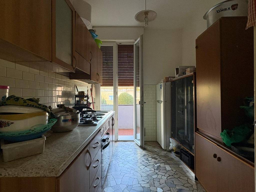 Proponiamo in vendita appartamento al primo piano servito da ascensore di nuova installazione, recentemente sostituito nell’ambito degli interventi di riqualificazione effettuati con il Bonus 110%. L’edificio è stato oggetto di importanti lavori di efficientamento energetico e si trova in posizione interna e tranquilla, lontana dal traffico ma comoda ai servizi. — L’ingresso si apre su un comodo disimpegno che conduce alla zona giorno composta da soggiorno con accesso al terrazzo e cucina separata, anch’essa con uscita esterna. Gli spazi risultano ben distribuiti e funzionali alla vita quotidiana. La zona notte, organizzata tramite corridoio, comprende uno studio, una camera matrimoniale con terrazzo, una camera doppia anch’essa servita da terrazzo e un bagno finestrato con box doccia. Completa il bagno un pratico antibagno con attacco per la lavatrice e alloggio della caldaia. L’appartamento si presenta in buone condizioni e dotato di finiture moderne: serramenti esterni in PVC con vetrocamera e avvolgibili in alluminio, riscaldamento autonomo con caldaia a condensazione di recente installazione e radiatori in acciaio con termovalvole. I serramenti interni sono in legno, la porta d’ingresso è blindata e la pavimentazione in ceramica uniforme dona continuità agli ambienti. Completa la proprietà un garage singolo al piano terra. — Una soluzione ideale per chi cerca comfort, efficienza energetica e tranquillità, senza rinunciare alla comodità dei servizi. Per maggiori informazioni contattare l’ufficio al tel. 0444 305077.