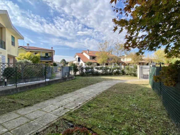A Montegalda, in posizione strategica a ridosso del centro paese e comoda al casello autostradale, proponiamo in vendita un elegante appartamento trilocale situato in una tranquilla strada chiusa all’interno di un quartiere residenziale ben curato. — La soluzione si distingue per i suoi due ampi giardini privati, uno frontale e uno sul retro, ideali per momenti di relax all’aperto o per famiglie con bambini e animali domestici. Nel giardino posteriore è inoltre presente un cancello carraio che consente di utilizzare lo spazio come posto auto scoperto, offrendo una comoda soluzione aggiuntiva per la sosta. L’ingresso indipendente dal cancelletto pedonale apre sul primo giardino, curato e accogliente, che accompagna all’ingresso dell’abitazione. Qui si sviluppa un luminoso soggiorno con angolo cottura moderno, impreziosito da finiture attuali e funzionali. La zona giorno si distingue per la pavimentazione effetto legno e per le ampie finestre che donano calore e luce naturale agli ambienti. Una scala a chiocciola interna permette l’accesso diretto al piano interrato, dove troviamo il garage singolo collegato internamente all’abitazione, garantendo praticità anche nelle giornate di pioggia. Sempre al piano interrato è presente una spaziosa cantina privata, ideale come deposito. La zona notte comprende una camera matrimoniale, una camera singola e uno studio, entrambe le stanze servite di accesso diretto al giardino sul retro. I bagni sono due: uno finestrato dotato di vasca e un secondo bagno cieco completo di doccia. L’appartamento viene venduto arredato di cucina completa, bancone con due sgabelli, divano, sedie e armadio studio, offrendo una soluzione pronta per essere abitata fin da subito. — Il contesto della palazzina è riservato e le spese condominiali risultano contenute grazie a una gestione efficiente degli spazi comuni. L’immobile rappresenta la scelta ideale per chi cerca tranquillità senza rinunciare ai servizi offerti dal paese, come scuole e negozi, raggiungibili comodamente a piedi oppure in pochi minuti d’auto. La vicinanza all’autostrada A4 permette inoltre di raggiungere facilmente Vicenza, Padova e le principali direttrici del Veneto. Per maggiori informazioni contattare l’agenzia al numero 0444 305077.