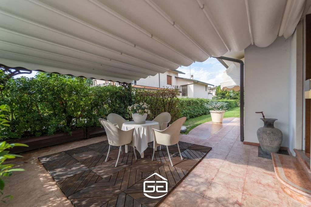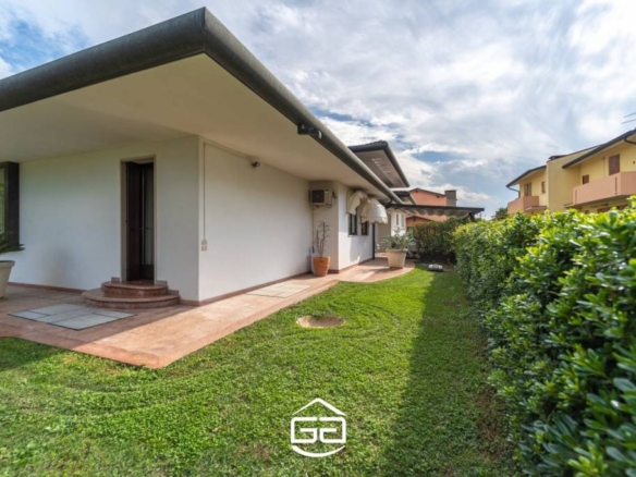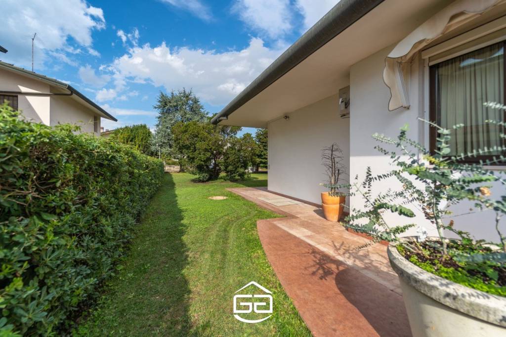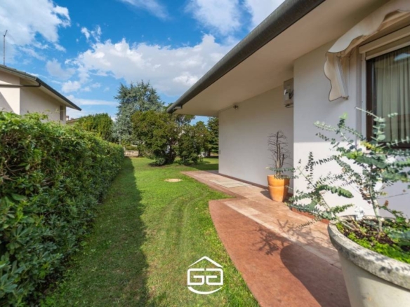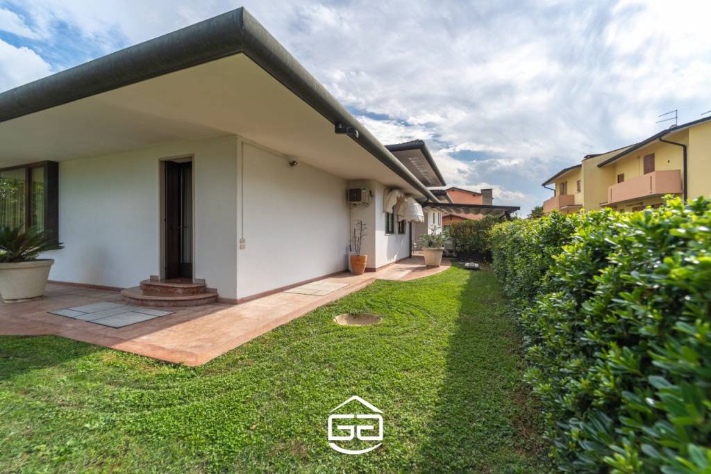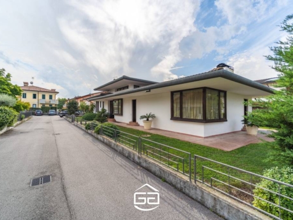 In posizione privilegiata nel cuore di Quinto Vicentino, proponiamo in vendita una splendida villa singola di circa 250 mq, situata in una zona tranquilla e riparata dal traffico, ma a due passi da tutti i principali servizi. — La proprietà si sviluppa interamente su un unico piano, accogliendoci con un ampio ingresso che conduce alla zona giorno composta da una spaziosa cucina abitabile in stile americano, perfetta per ospitare cene conviviali. Il soggiorno, dotato di un elegante camino in marmo, si apre direttamente sul curato giardino, creando un continuum tra gli spazi interni ed esterni. La zona notte, leggermente rialzata rispetto alla zona giorno, offre tre camere da letto: due camere singole e una splendida suite matrimoniale con bagno privato. La cabina armadio, posta esternamente rispetto alla suite, garantisce ampi spazi per organizzare vestiti e accessori. A completare la zona notte, altri due bagni rifiniti con materiali di alta qualità. Un soppalco con vista sull’ingresso principale rappresenta uno spazio ideale per creare una zona relax o uno studio. Al piano seminterrato troviamo una moderna taverna, perfetta per momenti di svago, una comoda lavanderia e una stanza hobby. — Esternamente, l’ampio giardino è arricchito da una pompeiana adiacente alla cucina, ideale per godere degli spazi aperti durante pranzi o cene all’aperto. Un secondo pergolato copre l’area antistante al garage, permettendo di ospitare fino a tre auto. Completano la proprietà due ampi box auto. Particolare attenzione è stata posta al design e alle finiture: riscaldamento a pavimento, porte realizzate da maestri artigiani veneziani, parquet in legno pregiato, sanitari sospesi, e dettagli in marmo di grande valore. Per maggiori informazioni contattare l’ufficio al tel. 0444 305077.